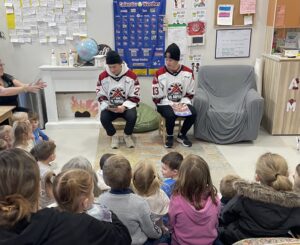 February 2nd – The Virden Oil Capitals participated in “I LOVE TO READ” month at Goulter School. Several of the Oil Caps went and took turns reading story books to each classroom as guest readers! The kids enjoyed listening to the stories just as much as the Oil Caps enjoyed getting to read to little minds!