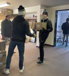 January 20th – Oil Capitals Colten Miller, Nolan Wallace, and Tyler Thoendel met at the Valleyview Coop to help haul meat for the Food Cupboard!